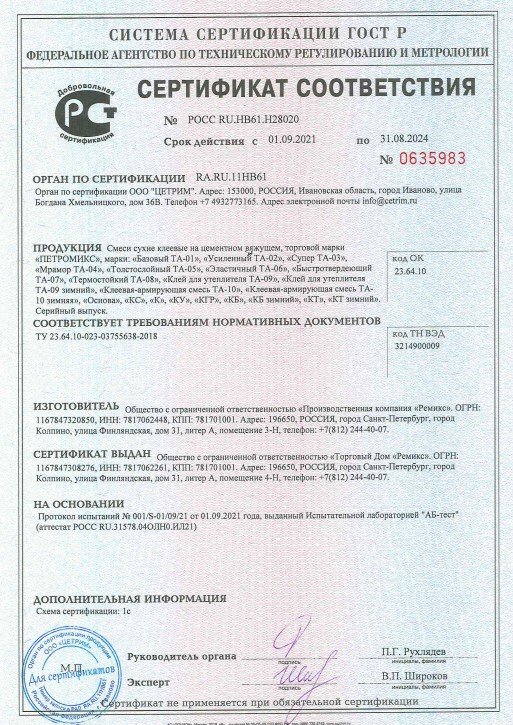 Продажа сухих смесей в Тихвине